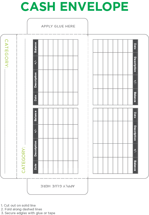 The cash envelope template above allows you to print, cut, and fold your own envelopes. They are just big enough for some cash and receipts if you prefer. We made sure to include a register (of sorts) on the front so you can log your spending if you wish. Just click the template image and print from your browser.